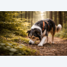 Un câine care face mantrailing:
